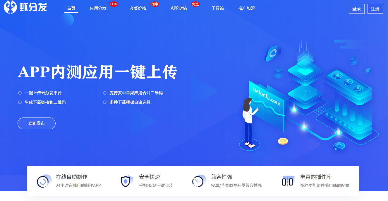 因此许多公司都会采用第三方的应用分发平台,来对自家产品进行内测分发,采用第三方应用分发平台的好处还是比较多的,比如审核周期短,审核难度低,预算更低等等。下面我以虾分发应用分发平台为例,介绍一下如何实现应用分发功能。